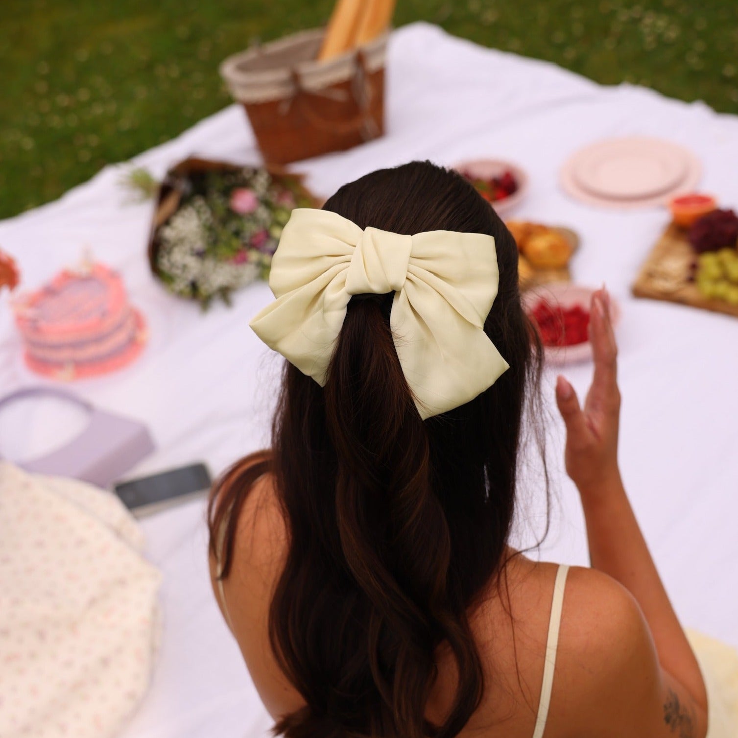 Elevate your look with our elegant Hair Bow, crafted from soft satin made from recycled polyester. This eco-friendly accessory features an anti-slip clip, ensuring it stays securely in place all day. Comfortable and stylish, it's the perfect addition to any outfit.